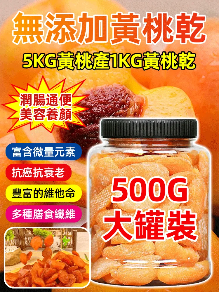 【限定狂促|特優級日曬黃桃果乾】果肉Q彈無添加|古法日晒蜜製 買2罐狂省549元!5KG新鮮黃桃濃縮成1KG精華,富含多種膳食纖維,潤腸通便、營養滿滿、健康加倍!