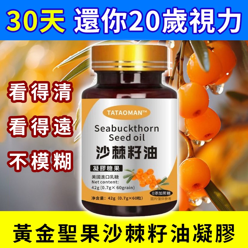 5分鐘前黃金聖果沙棘籽油凝膠(60粒),輕鬆攻克所有眼病難題,三天就見效,60天治愈,徹底不復發!100%看得清、看得遠、不模糊!還可以降三高,提高免疫力,抗衰老! - 1入組(改善眼病)僅需NT$899元